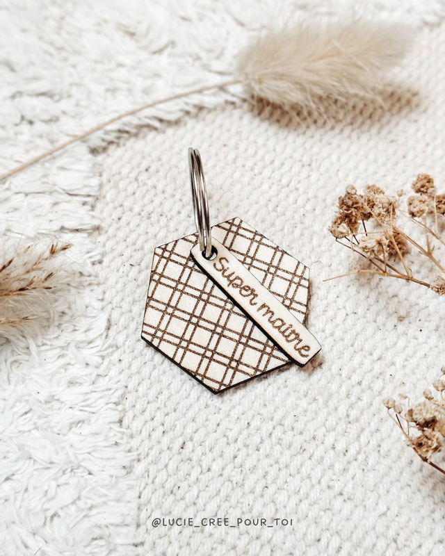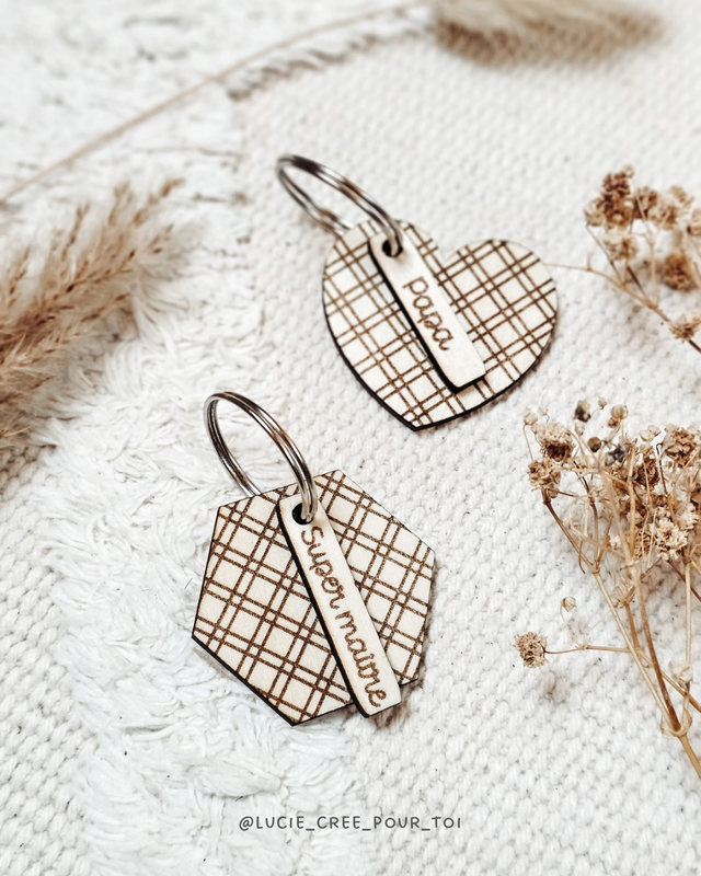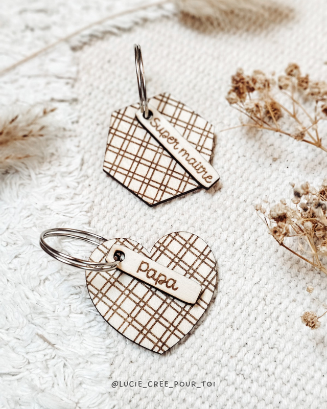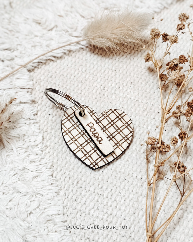 Craque pour ce porte-clé en bois gravé, à la fois naturel, léger et plein de charme avec son motif carreaux vichy intemporel. Tu choisis ta personnalisation (prénom, mot doux, date, phrase courte…) et tu l’indiques simplement dans le champ libre « message à l’attention du commerçant » lors de l’étape de paiement. Je me charge du reste ✨