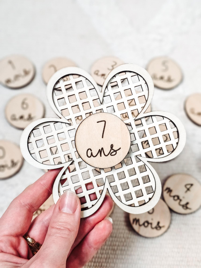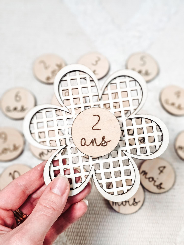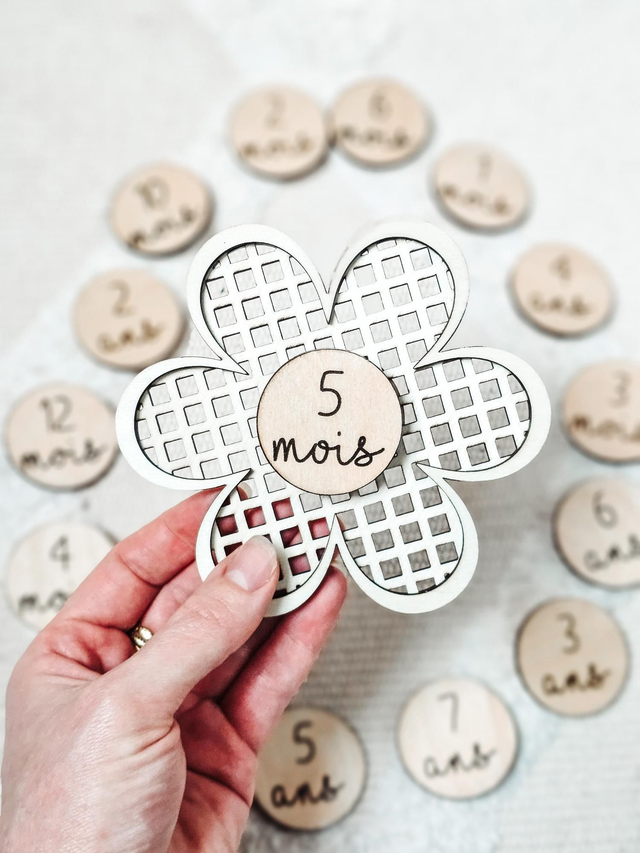 Tout en finesse et en douceur, ce support carte étape en forme de fleur t’accompagne pour immortaliser chaque moment important de ton bébé, qui deviendra grand. Réalisé en bois de tilleul 3 mm, il est découpé et gravé avec soin dans mon atelier pour un rendu naturel, délicat et intemporel.