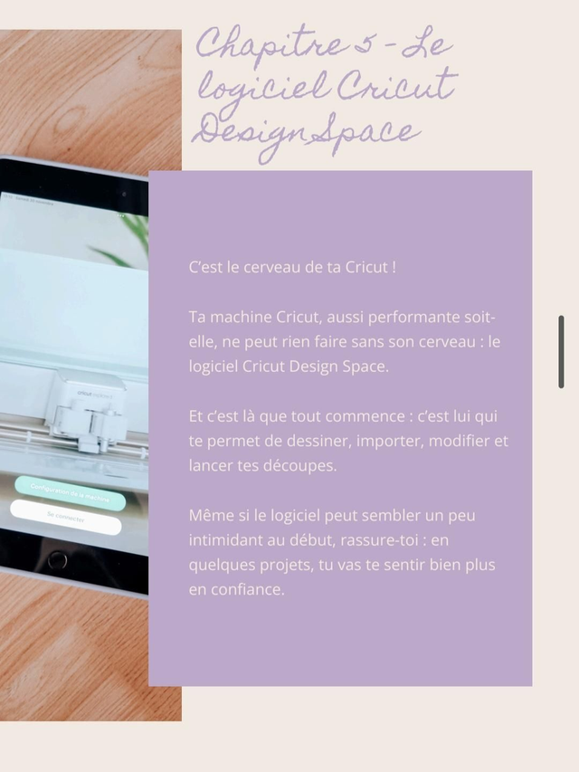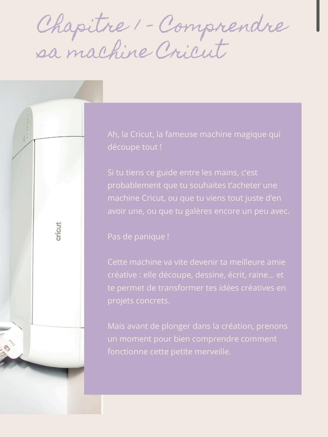 Un ebook pensé comme une discussion entre copines, simple mais précis, ludique et inspirant. Parfait pour t’aider à révéler tout ton potentiel créatif avec ta Cricut Joy, Xtra, Explore ou Maker.